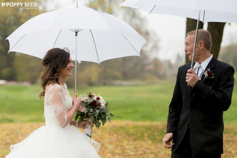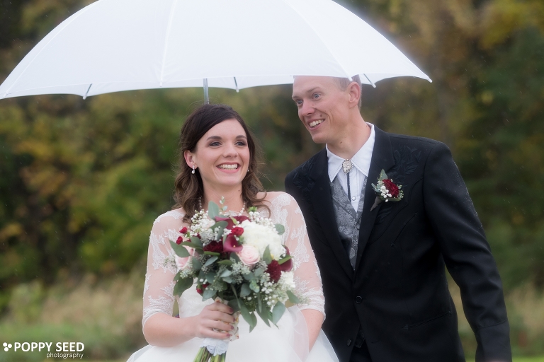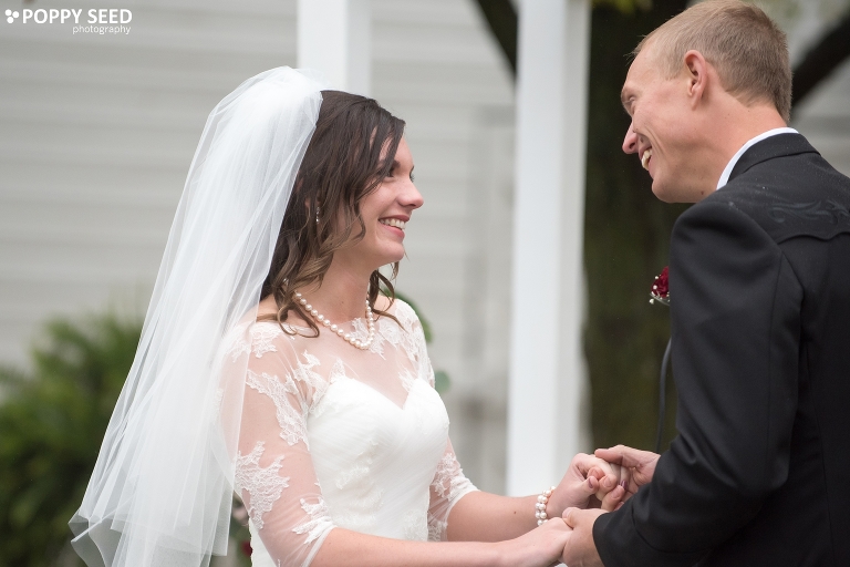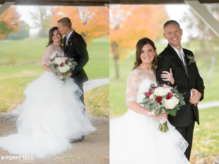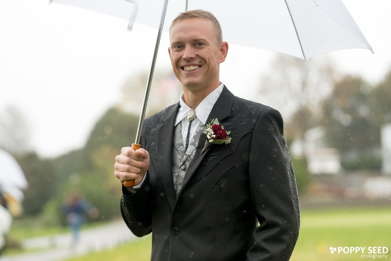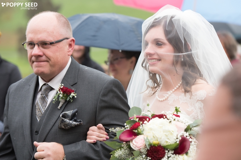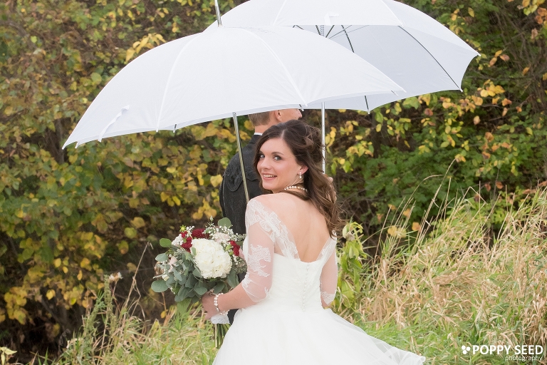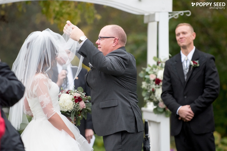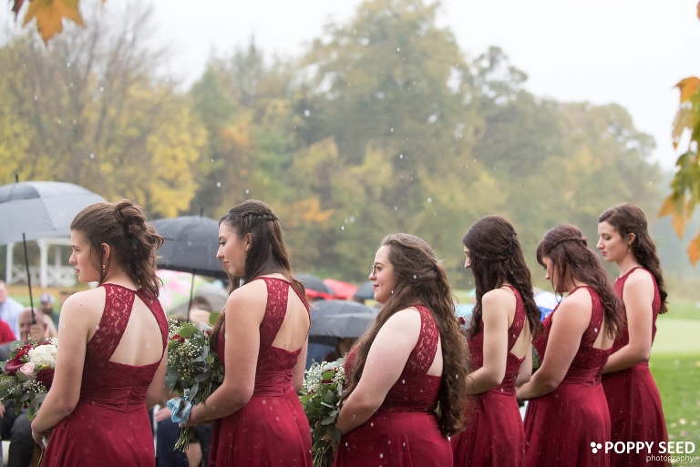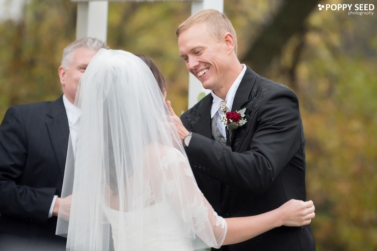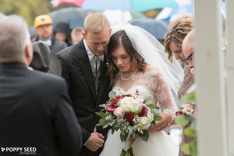Caitlyn and Kris’ wedding day was a rainy one. Despite the challenge, these two handled it with such calm and grace. I brought along some umbrellas and we went outside for the couple’s first look at each other. We made use of a small covered bridge for some initial portraits and then made our way back to the building where we used a covered porch area and some studio lighting to make use of Creeksbend’s beautiful outdoor scenery. The couple took a chance with the forecast and went on with their plans for an outdoor ceremony. Guests had umbrellas and the weather cleared and the rain lightened just in time for their vows. After the ceremony we were able to sneak back outside and get some more outdoor images of Caitlyn and Kris.