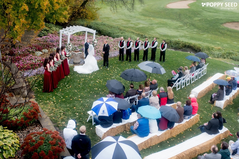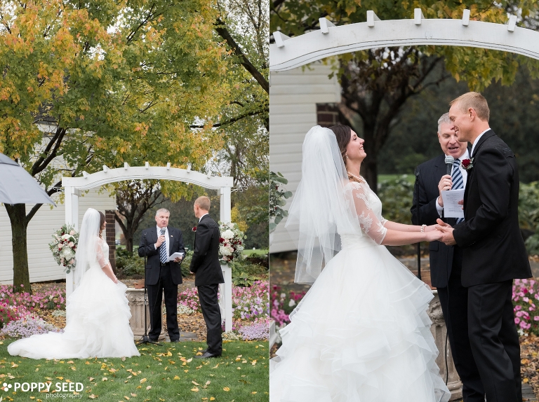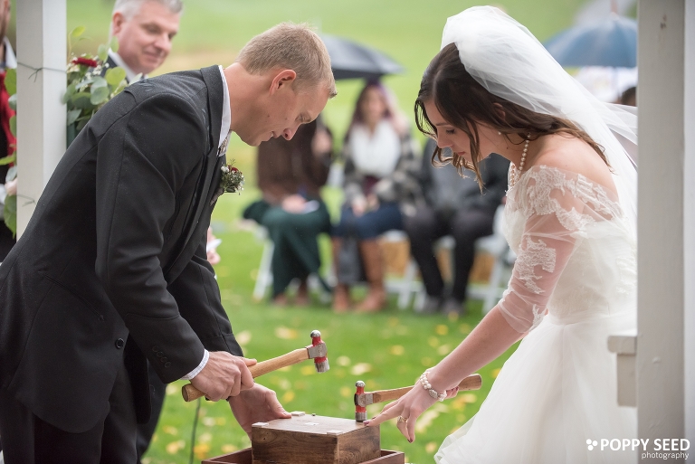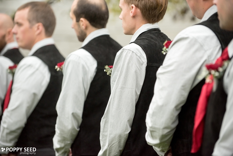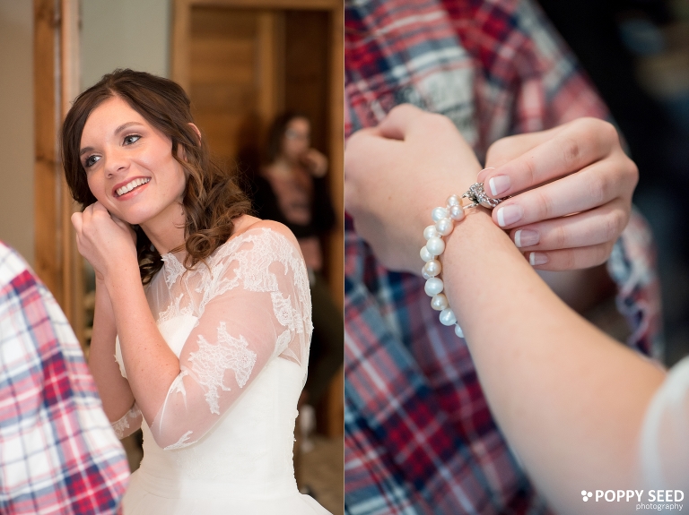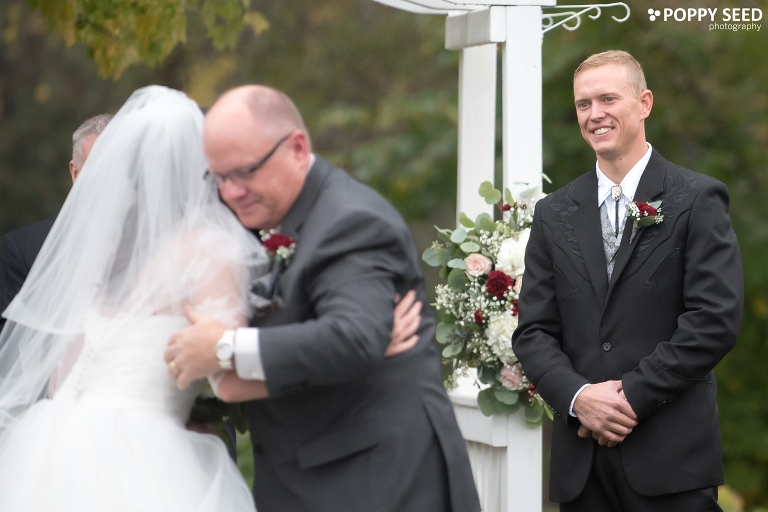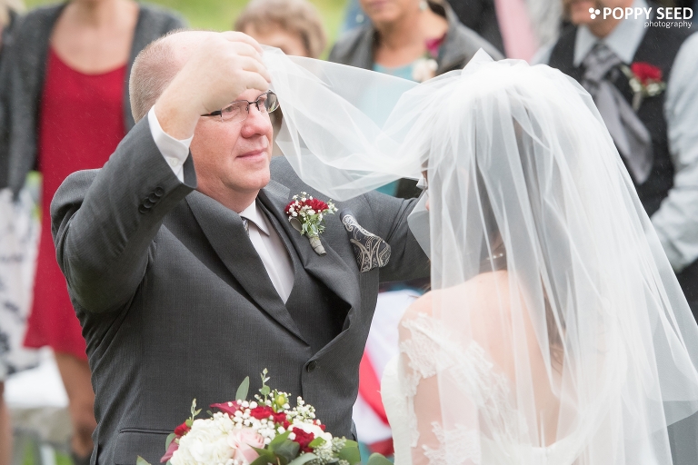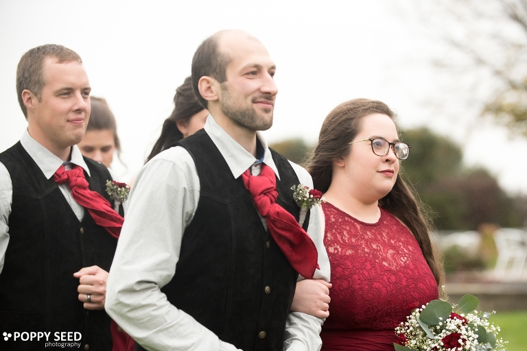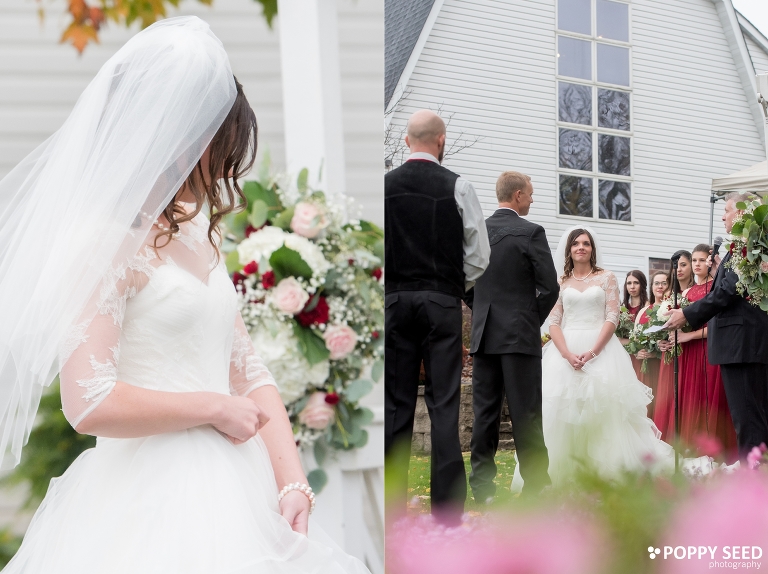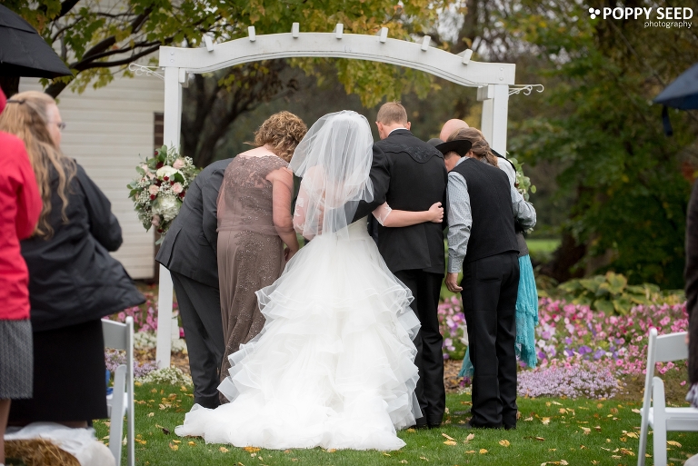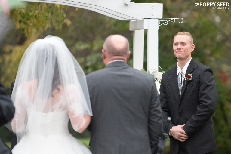 Caitlyn and Kris’ wedding day was a rainy one. Despite the challenge, these two handled it with such calm and grace. I brought along some umbrellas and we went outside for the couple’s first look at each other. We made use of a small covered bridge for some initial portraits and then made our way back to the building where we used a covered porch area and some studio lighting to make use of Creeksbend’s beautiful outdoor scenery. The couple took a chance with the forecast and went on with their plans for an outdoor ceremony. Guests had umbrellas and the weather cleared and the rain lightened just in time for their vows. After the ceremony we were able to sneak back outside and get some more outdoor images of Caitlyn and Kris.