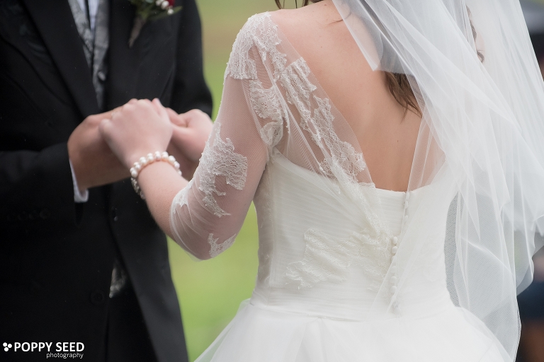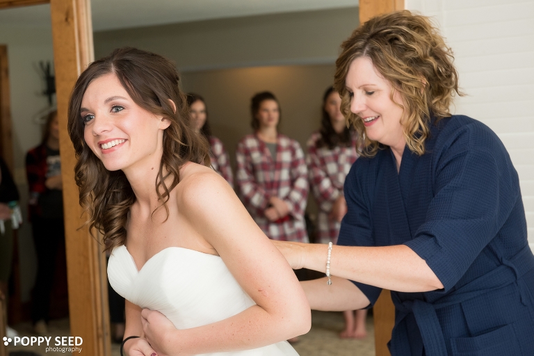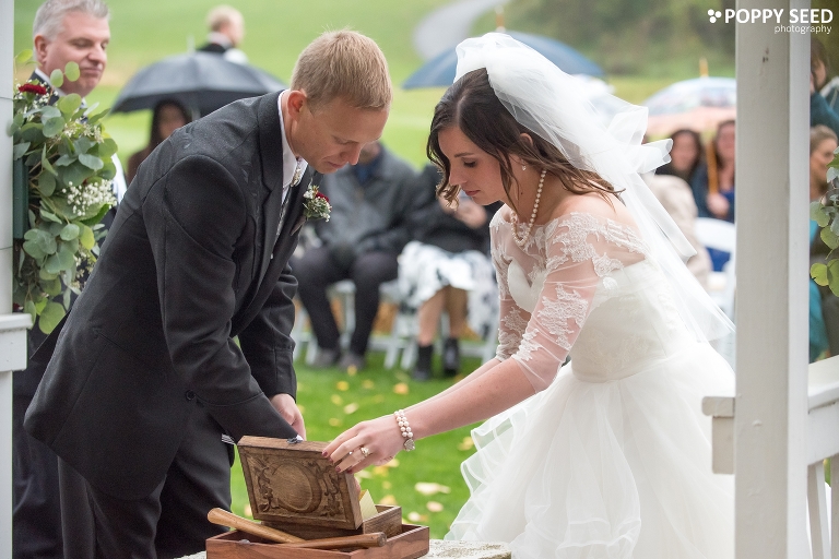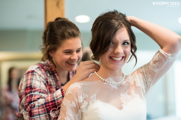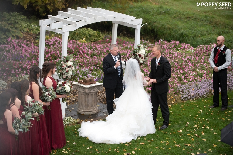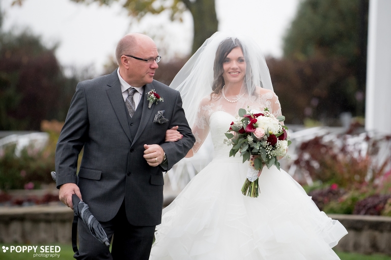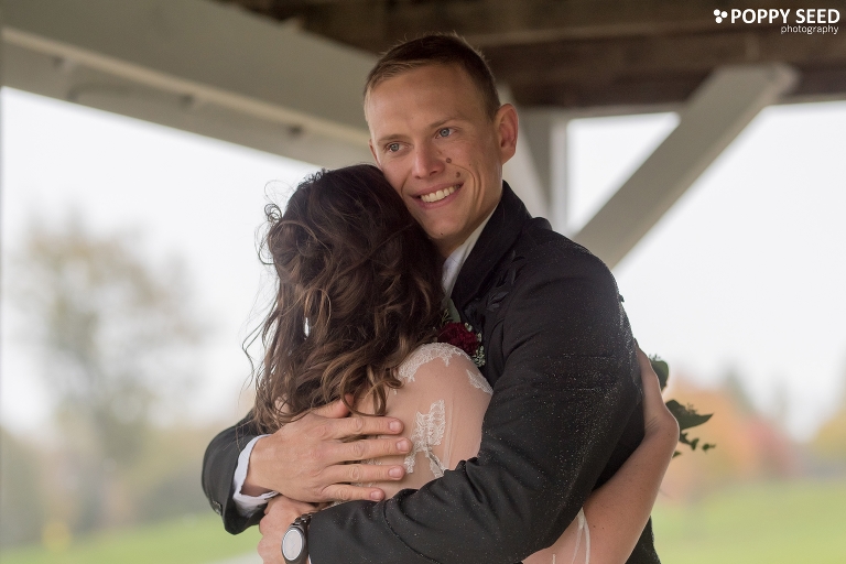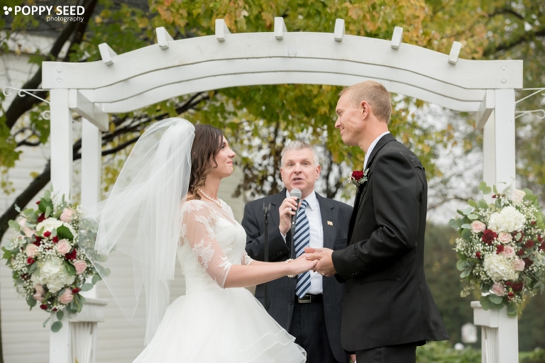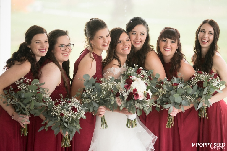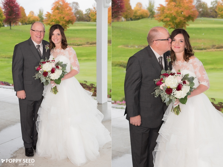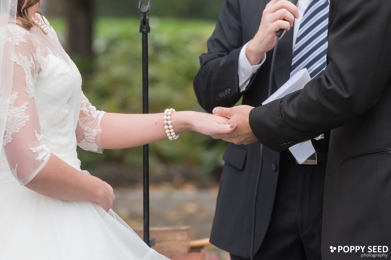 Caitlyn and Kris’ wedding day was a rainy one. Despite the challenge, these two handled it with such calm and grace. I brought along some umbrellas and we went outside for the couple’s first look at each other. We made use of a small covered bridge for some initial portraits and then made our way back to the building where we used a covered porch area and some studio lighting to make use of Creeksbend’s beautiful outdoor scenery. The couple took a chance with the forecast and went on with their plans for an outdoor ceremony. Guests had umbrellas and the weather cleared and the rain lightened just in time for their vows. After the ceremony we were able to sneak back outside and get some more outdoor images of Caitlyn and Kris.