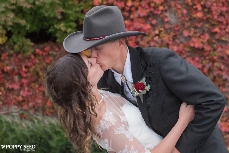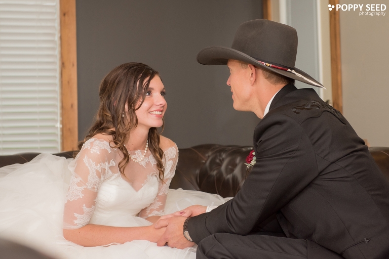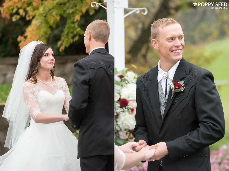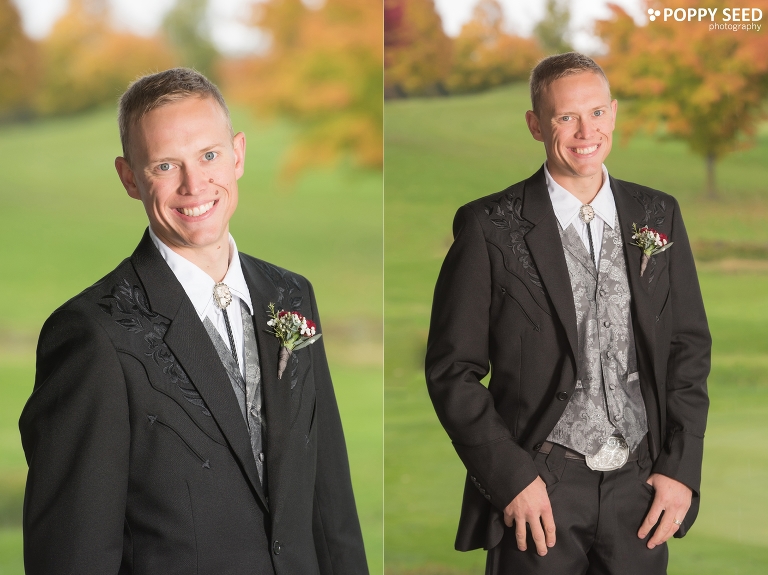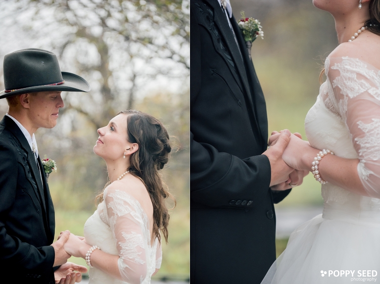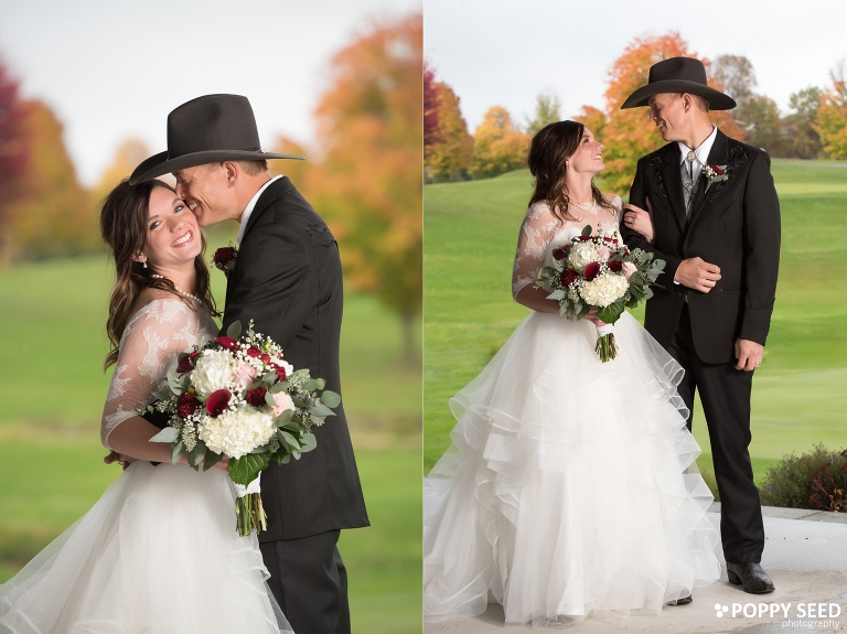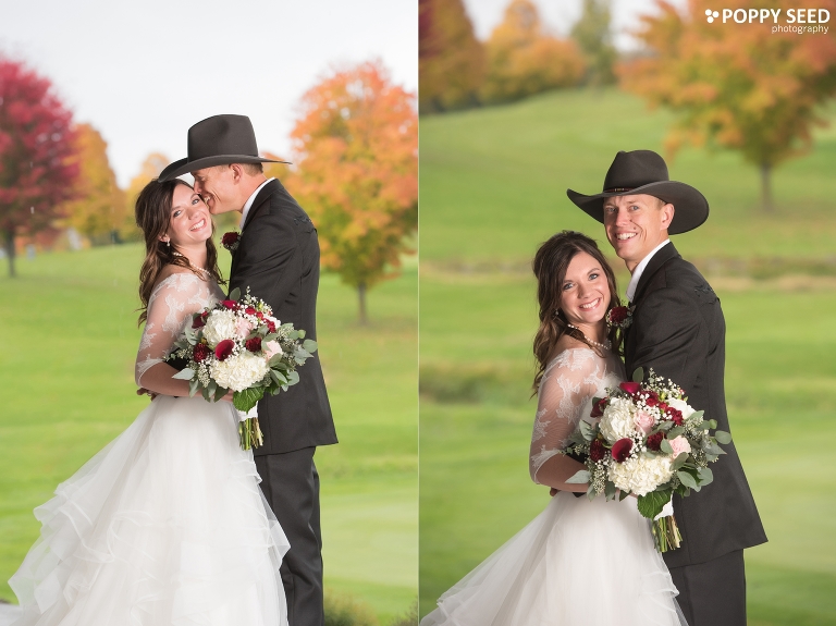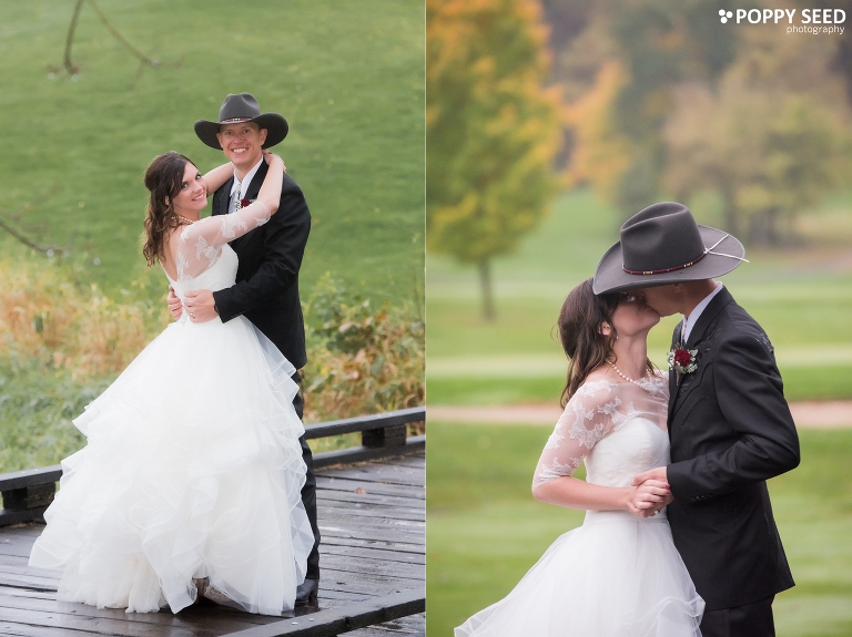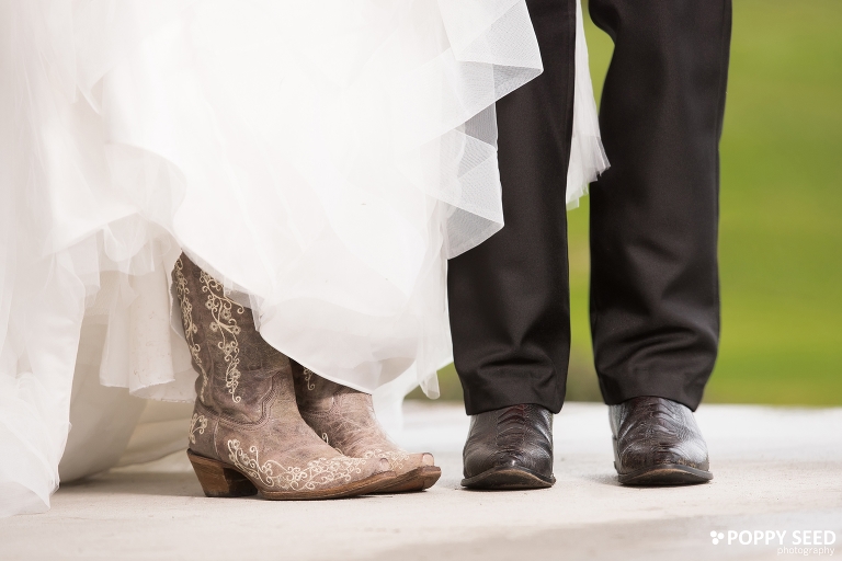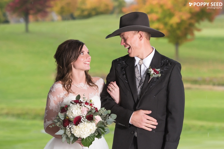 Caitlyn and Kris exchanged vows at the beautiful Creeksbend Golf Course, October 14, 2017. Their formal Western wedding was full of beautiful western style details and I adored the bride and groom’s cowboy boots. When I met these two for the first time, I asked them how they met, how Kris proposed, and more questions to get to know them better. The bride’s brother had been friends with Kris for years and they met on a group event outing to an Apple orchard. I love this. It’s a similar story to how I met my own husband. As they told the story to me, their love of each other was evident.