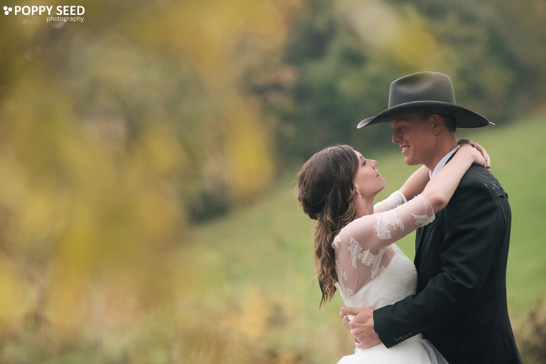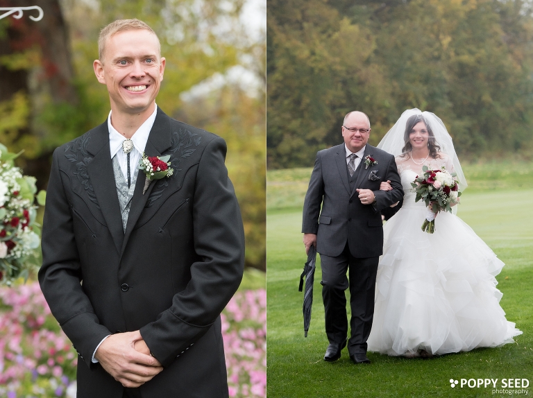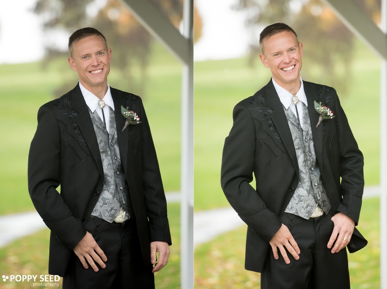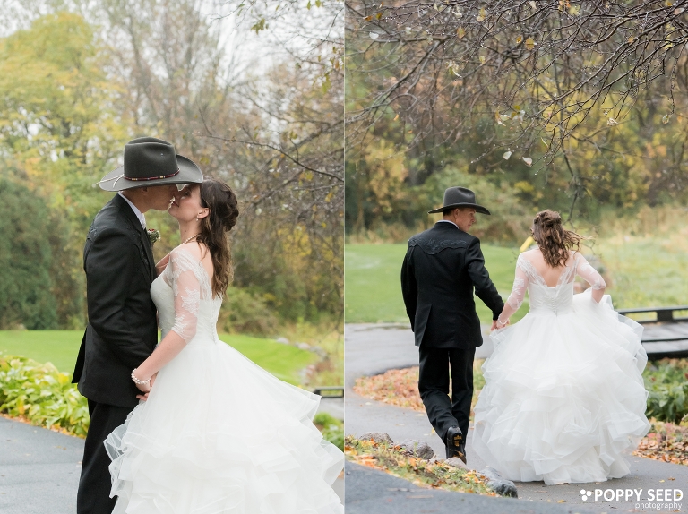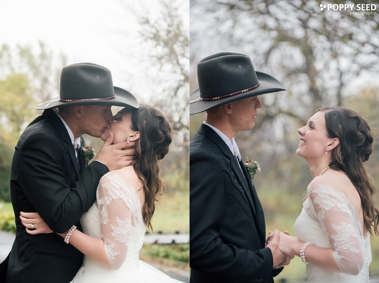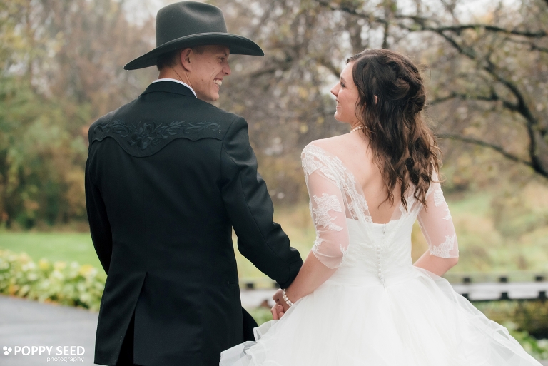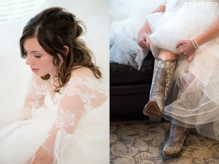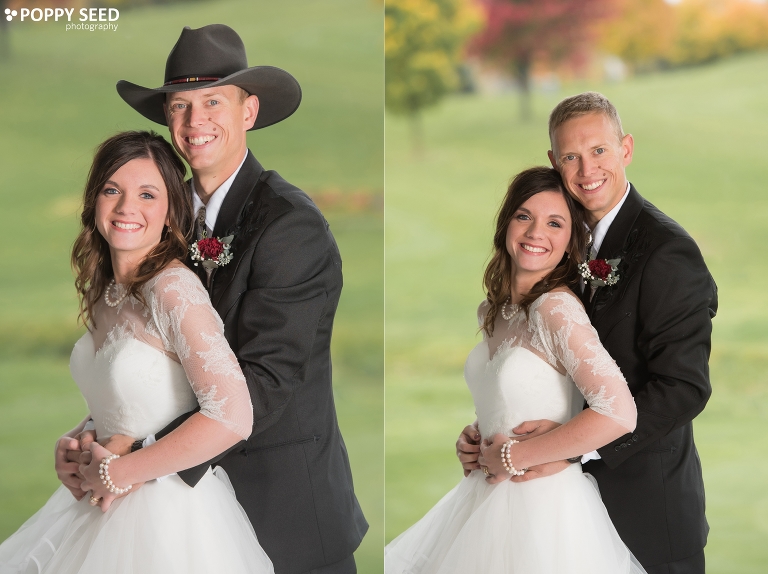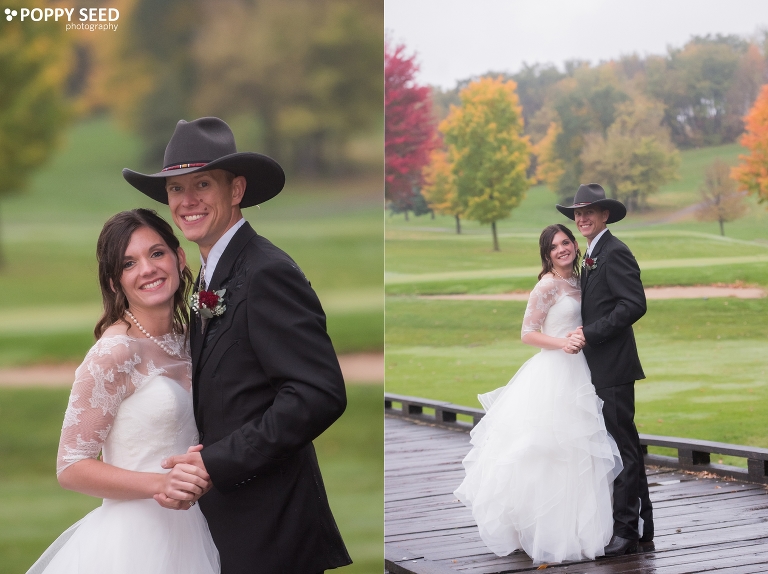 Caitlyn and Kris exchanged vows at the beautiful Creeksbend Golf Course, October 14, 2017. Their formal Western wedding was full of beautiful western style details and I adored the bride and groom’s cowboy boots. When I met these two for the first time, I asked them how they met, how Kris proposed, and more questions to get to know them better. The bride’s brother had been friends with Kris for years and they met on a group event outing to an Apple orchard. I love this. It’s a similar story to how I met my own husband. As they told the story to me, their love of each other was evident.