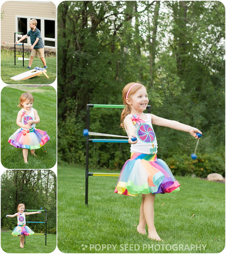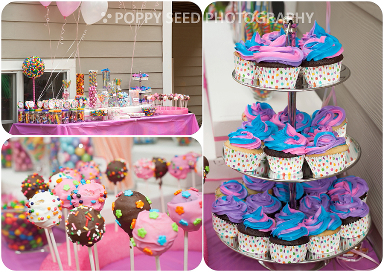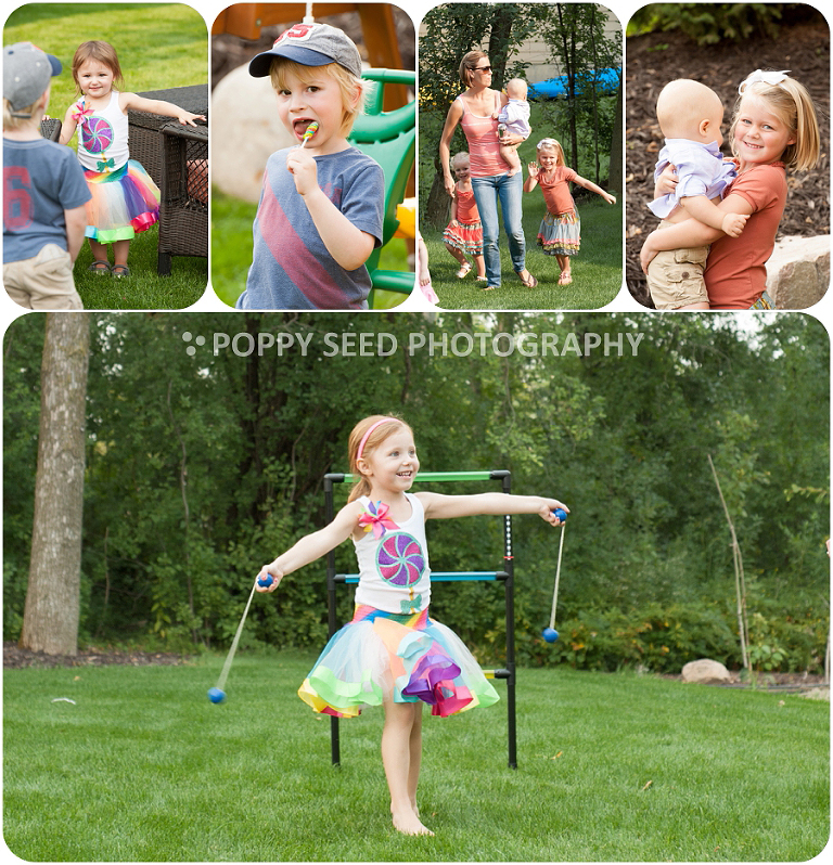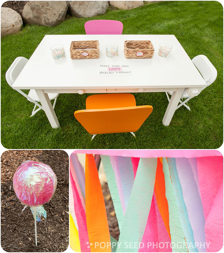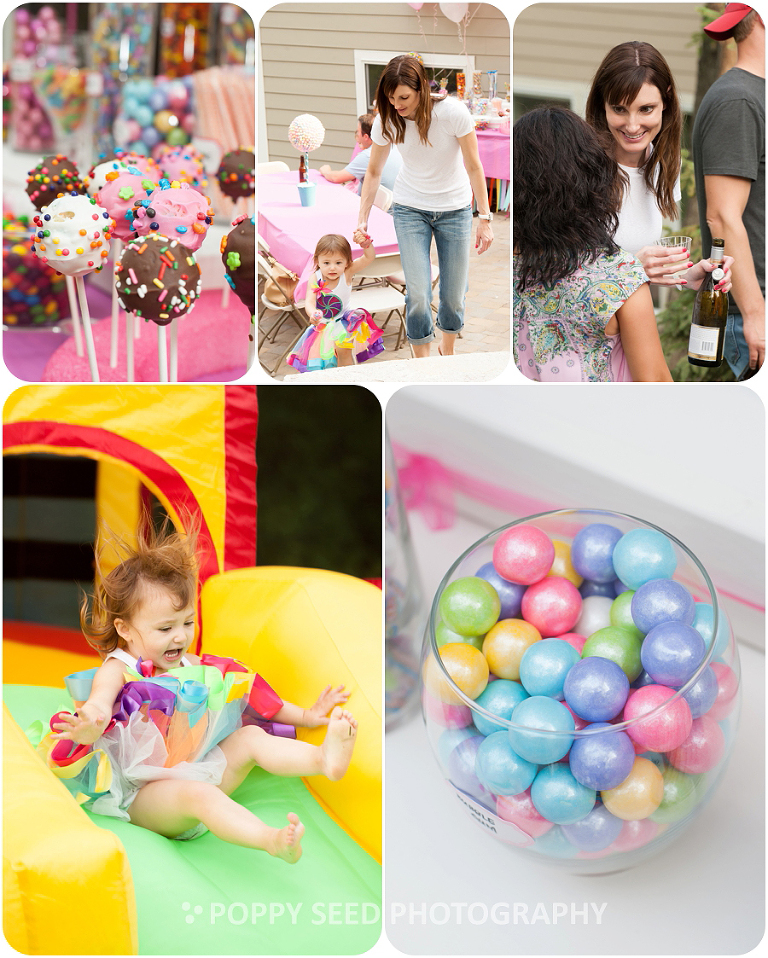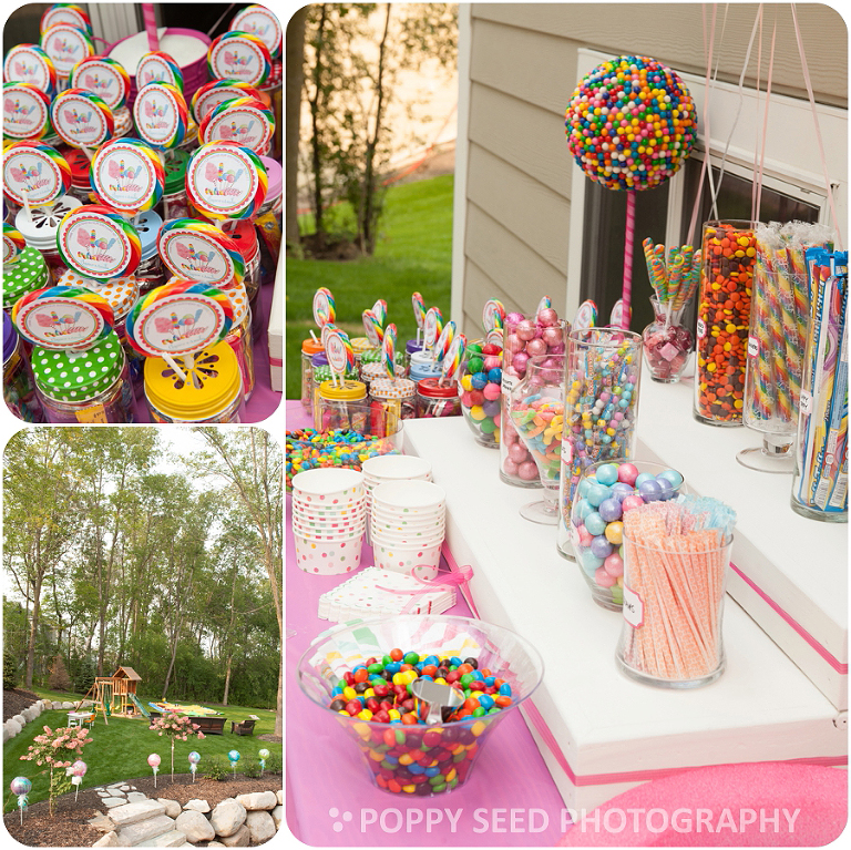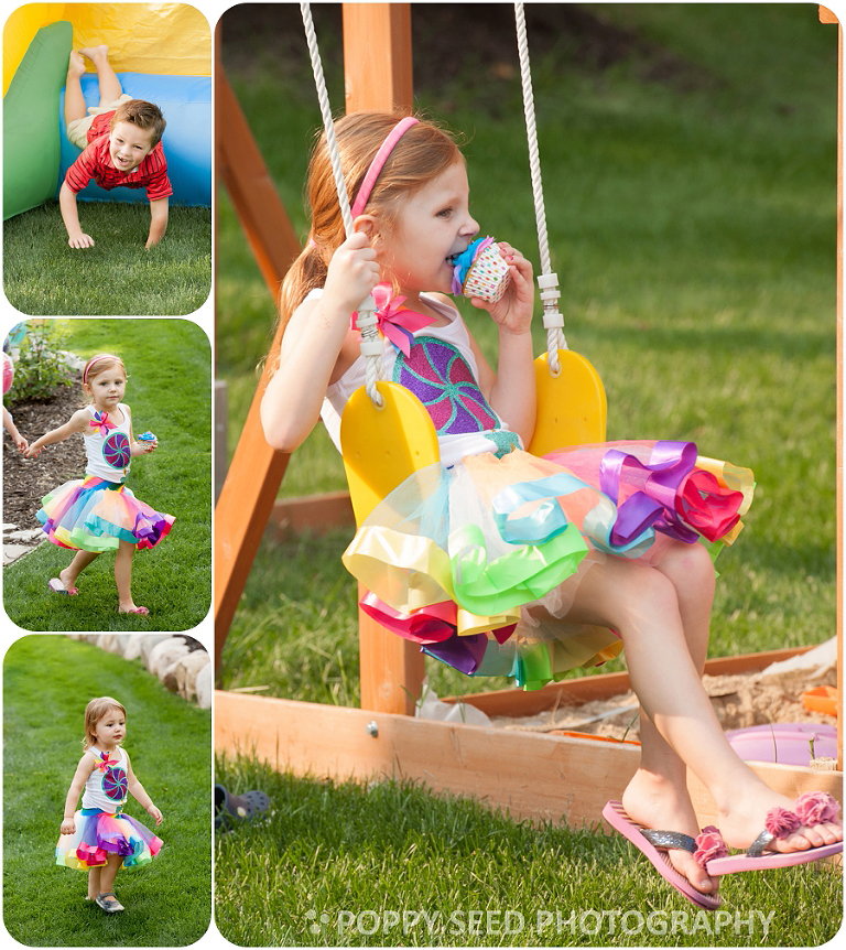 I recently had the pleasure of photographing these sweet little girls’ birthday party.  It was a beautiful summer evening and the party was abounding in sweetness and goodies.  Nadine, the girls’ mother, did a beautiful job transforming the family’s backyard into a candyland of fun!  Activities included a bouncy house, swing set, and a station to make your own candy necklace.