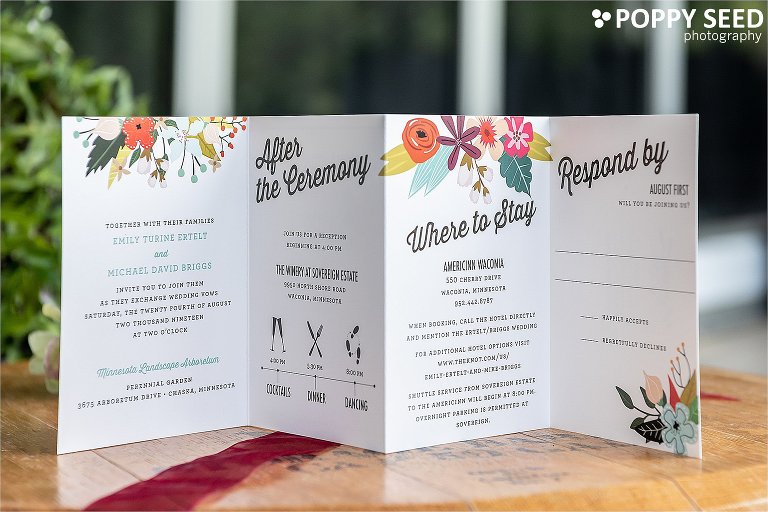Mike and Emelie were married in a beautiful outdoor ceremony at the Minnesota Landscape Arboretum at the end of August. This wedding was so fun and beautiful. The happy couple, their amazing group of friends and family, and the beautiful venues made for the perfect day. To top it off, the weather was absolutely perfect. After a beautiful ceremony, we traveled to The Winery at Sovereign Estate in Waconia for a beautiful wedding reception.