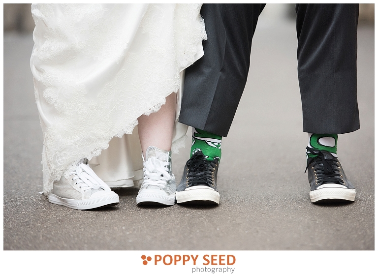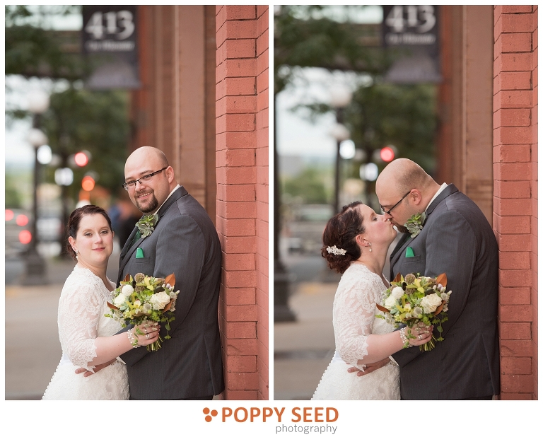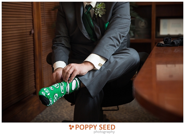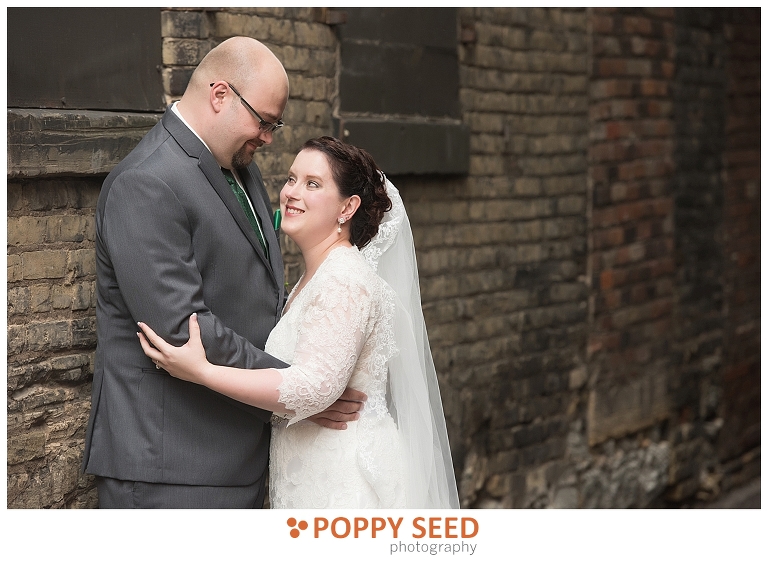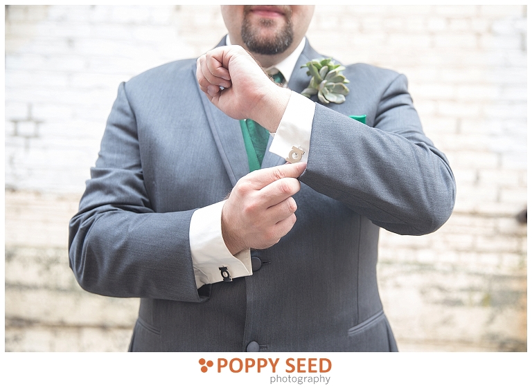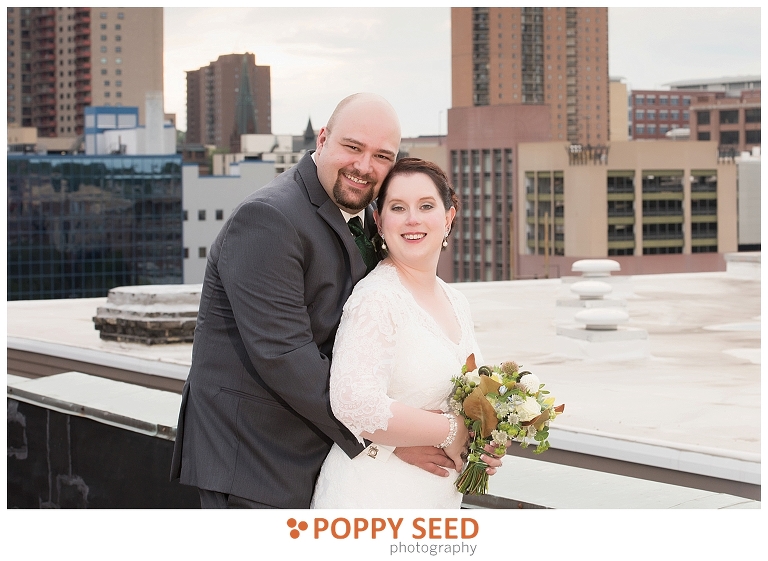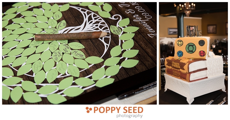 Congrats Jennifer and James! These two said “I do” at one of Lowertown St. Paul’s finest venues, 413 on Wacouta Events Center, one of my favorite venues in the Twin Cities. The couple’s wedding was a beautiful, intimate affair, with the bride’s sister as her maid of honor, and groom’s best friend as best man. The groom is a huge fan of roleplaying and comics and so Jennifer thoughtfully sprinkled and surprised the groom with themed details in their wedding. Her efforts included giving him Green Lantern cuff links and socks and having half of their wedding cake decorated like a Dungeons & Dragons player guide and Monster Manual.