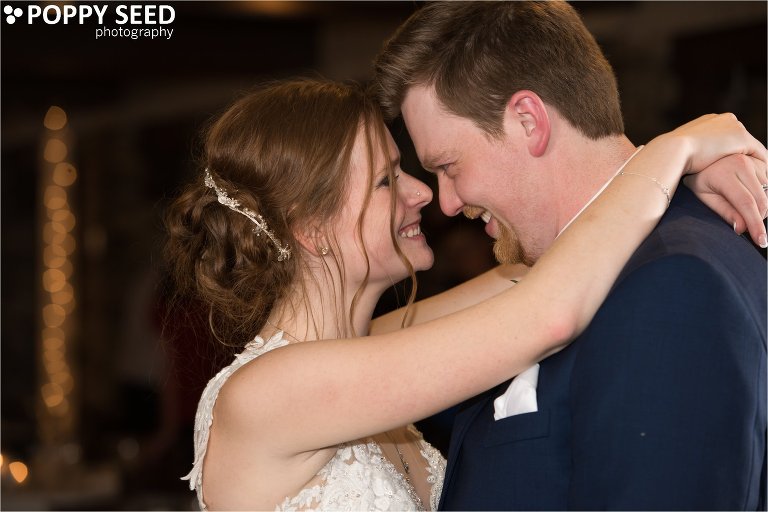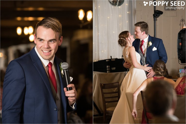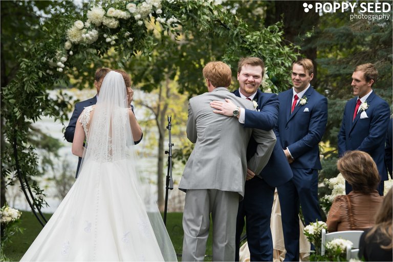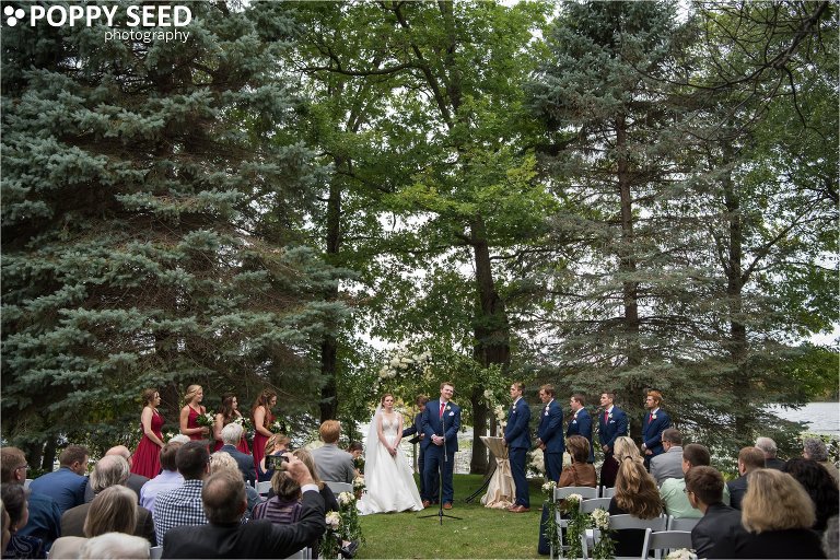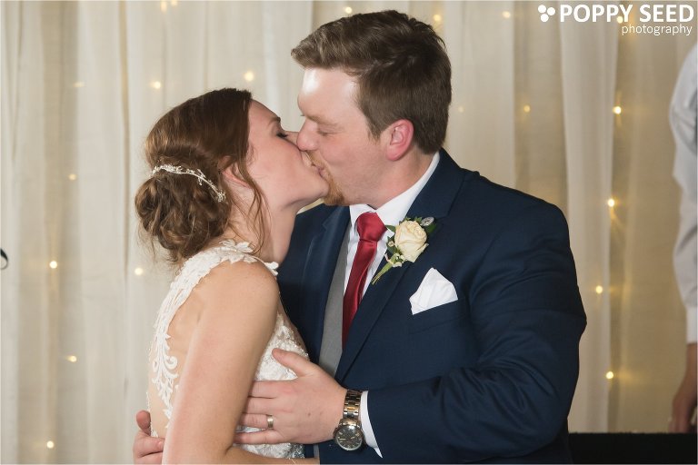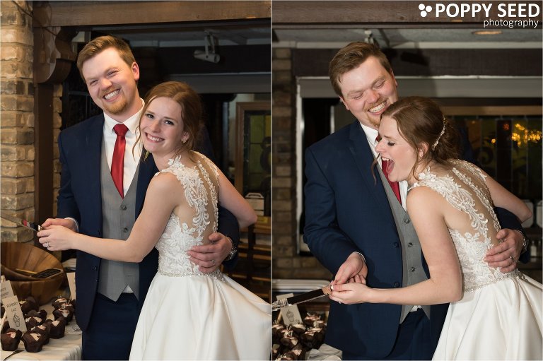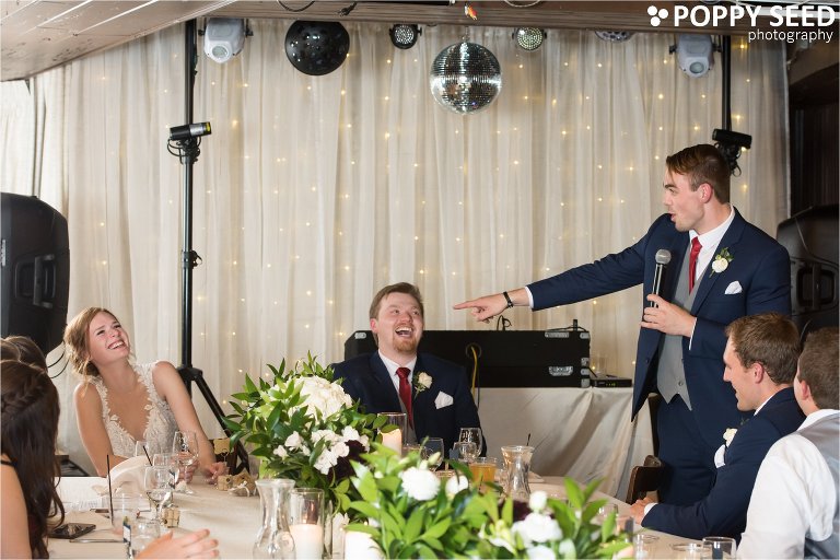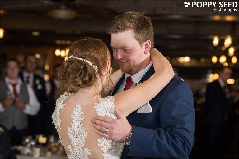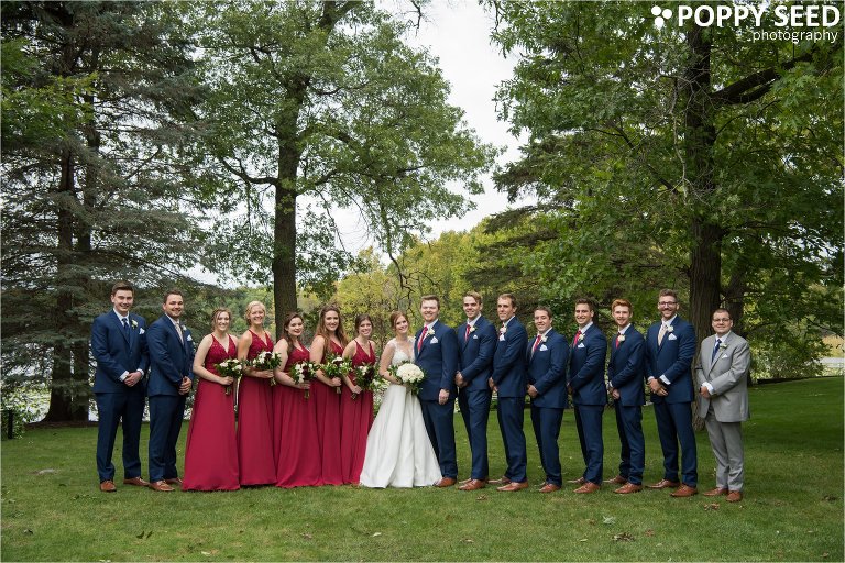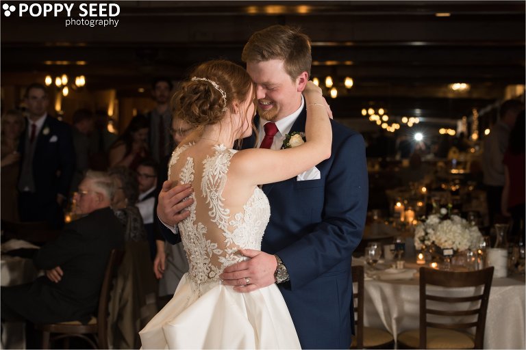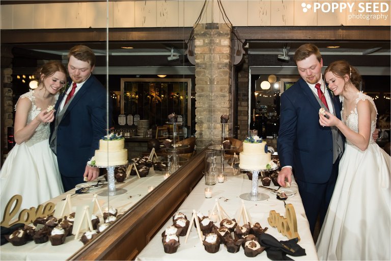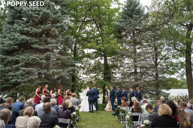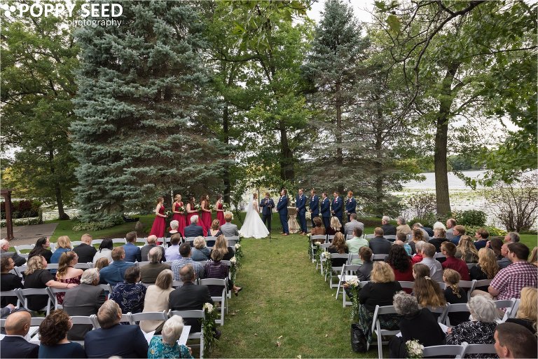 Venue: The Chart House | Photographer: Poppy Seed Photography | Florist: Wisteria Design | DJ: Midwest Sound | Bridal Gown, Bridesmaid Dresses: The Wedding Shoppe | Hair and Makeup: Cole’s Salon | Decor: Apres Party | Bakery: Hy-Vee