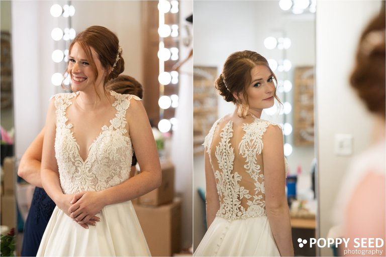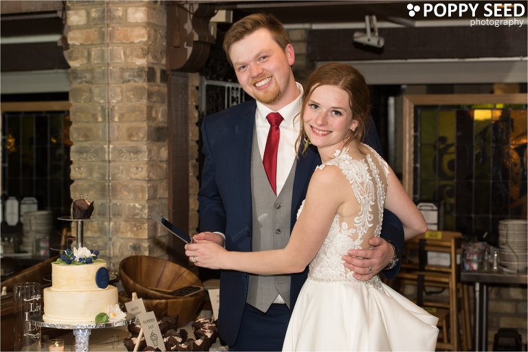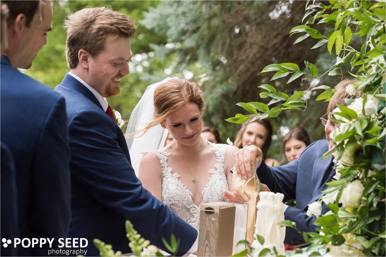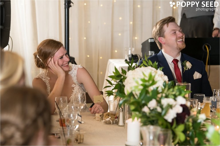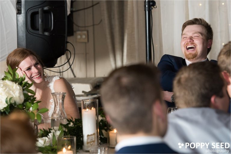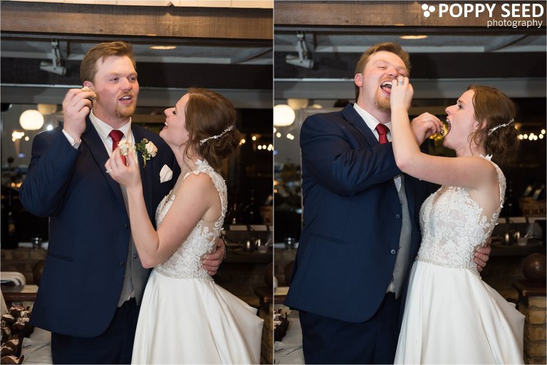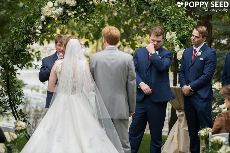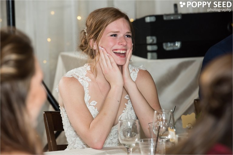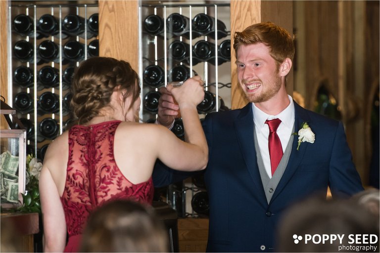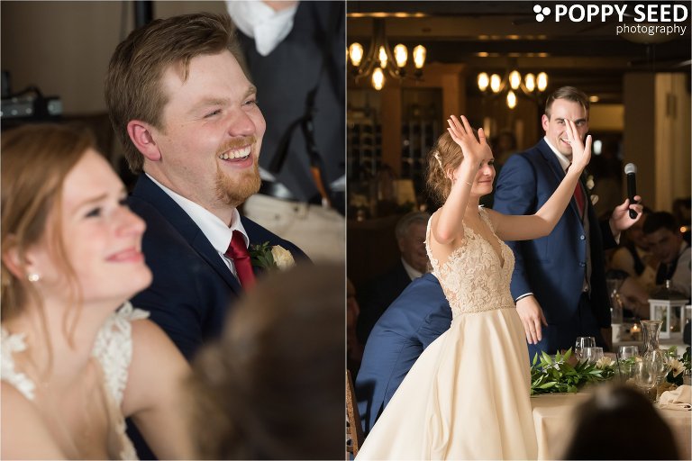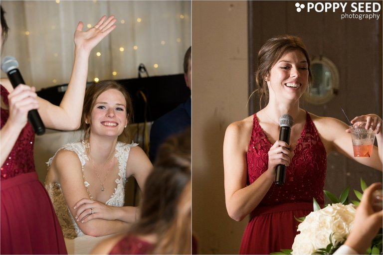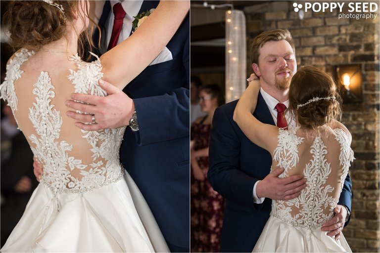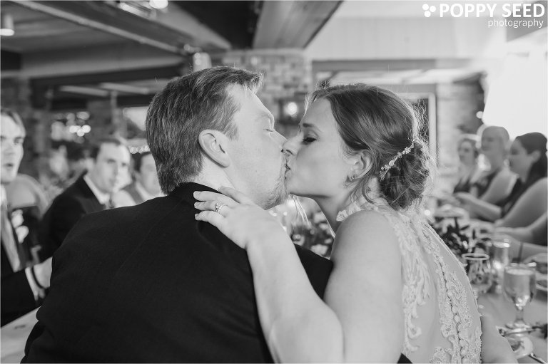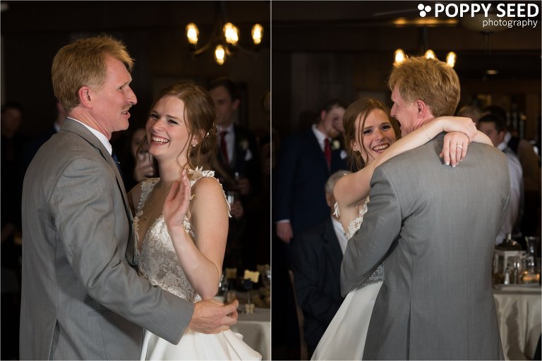 Venue: The Chart House | Photographer: Poppy Seed Photography | Florist: Wisteria Design | DJ: Midwest Sound | Bridal Gown, Bridesmaid Dresses: The Wedding Shoppe | Hair and Makeup: Cole’s Salon | Decor: Apres Party | Bakery: Hy-Vee