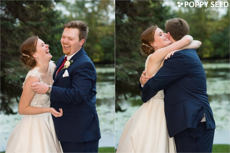 Kailee and Kevin were married at The Chart House in Lakeville, Minnesota on a lovely September day. The girls started the day modeling in some super cute robes. The first look in the garden was so very sweet and we were able to get a lot of variety for the couple. The day was overcast, which really helped with providing a myriad of options.