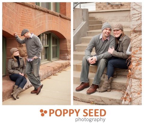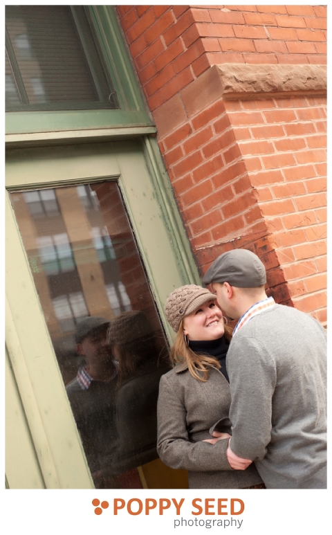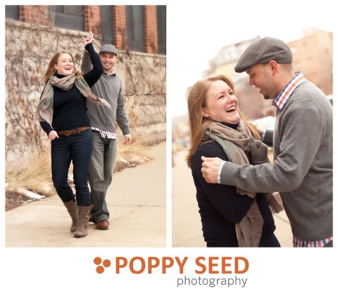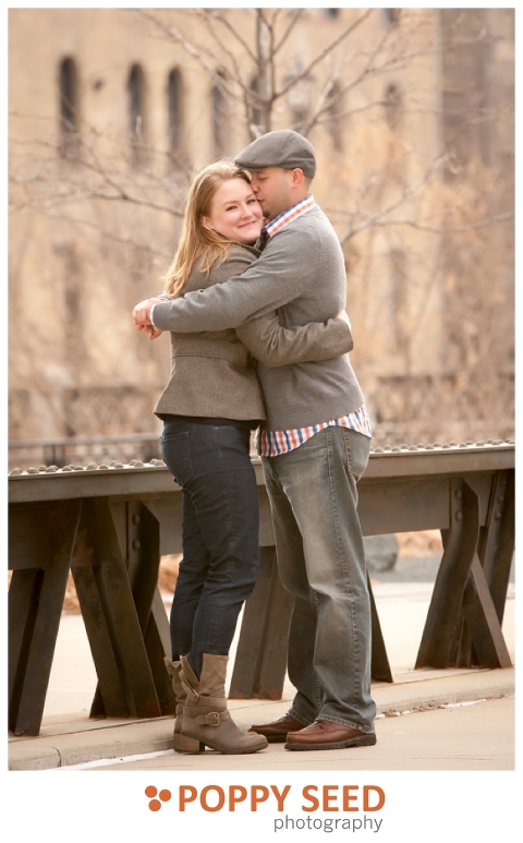 I had a great time this morning with Annie and James in the warehouse district of Minneapolis.  It was a little chilly, but totally worth it! They did a great job smiling despite the cold temps, maybe it’s because they’ve got their love to keep them warm!! Congrats James and Annie! I can’t wait to photograph your wedding this summer!