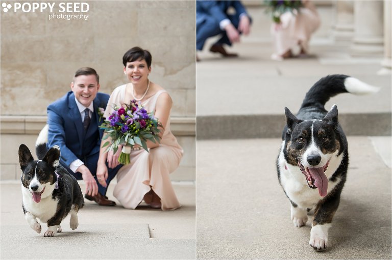 Andrew decided to ask her to marry him before dinner, since he was too nervous to eat. He had the couple’s corgi, Bennie, included on the proposal, by putting a sign around his neck that said, “Will you marry my dad?” Tasha said yes! They celebrated with their candlelight Italian dinner with some wine, watched Goodfellas and called their family and friends to share the news.