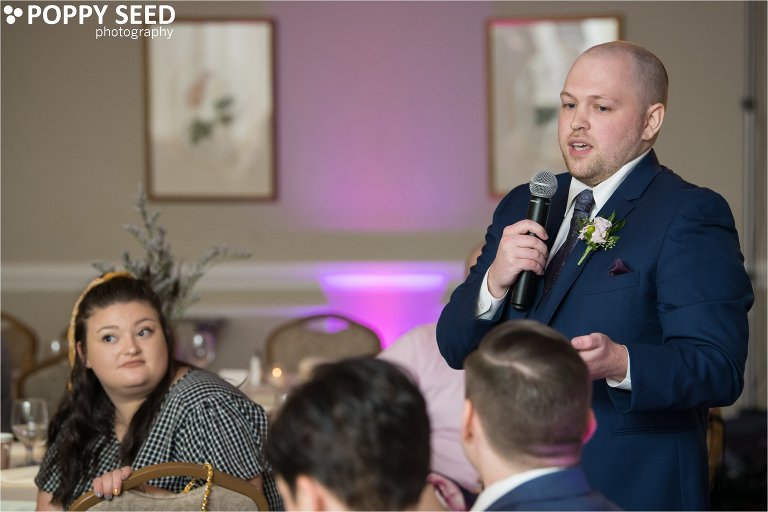 Venue: The Gale Mansion | Photographer: Poppy Seed Photography | Florist: Bachman’s | Officiant: Pastor Rachel Larson | Bridal gown maker: Alexander McQueen | Groomsmen: Men’s Warehouse | Groom’s attire: Joseph Abboud | Bakery: Glam Doll Donuts | Photobooth: The Traveling Photobooth | Hair and Make-up: OnSite Muse | DJ: Sonovent Productions
